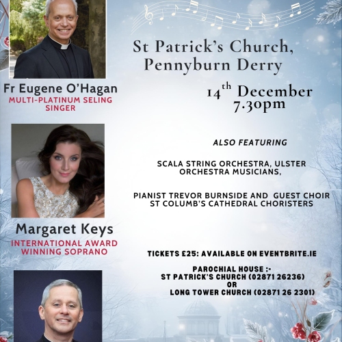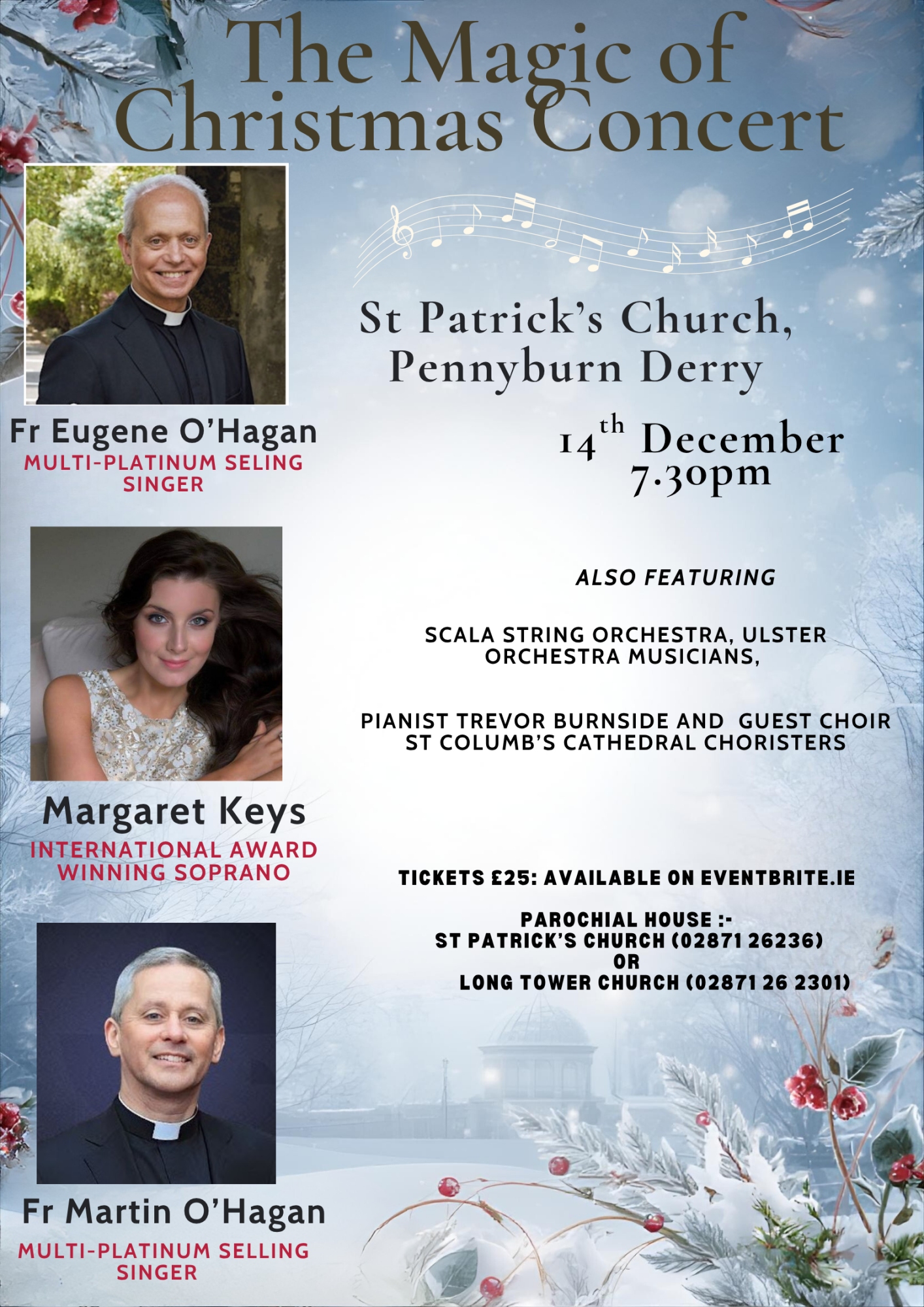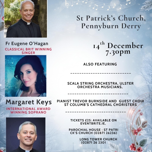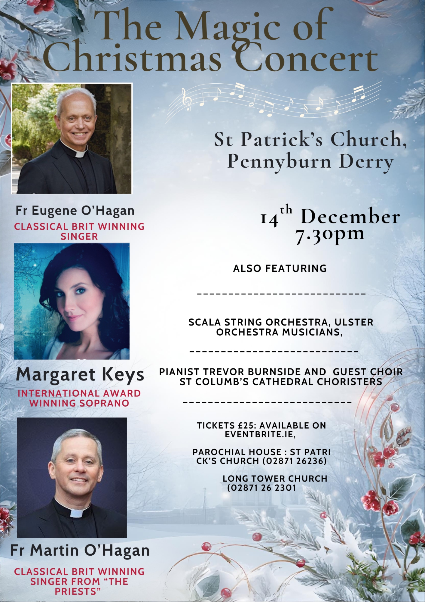 Join international Chart topping and Classical Brit winners, soprano Margaret Keys, Fr Eugene and Martin O'Hagan on Sunday 7th December for a night of festive celebrations.